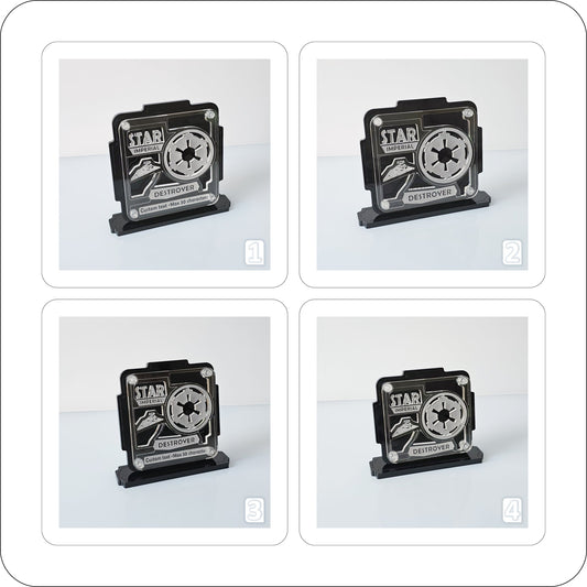 Display Plaque for STAR DESTROYER Models (black-clear, custom text, stand or wall display) -P003
