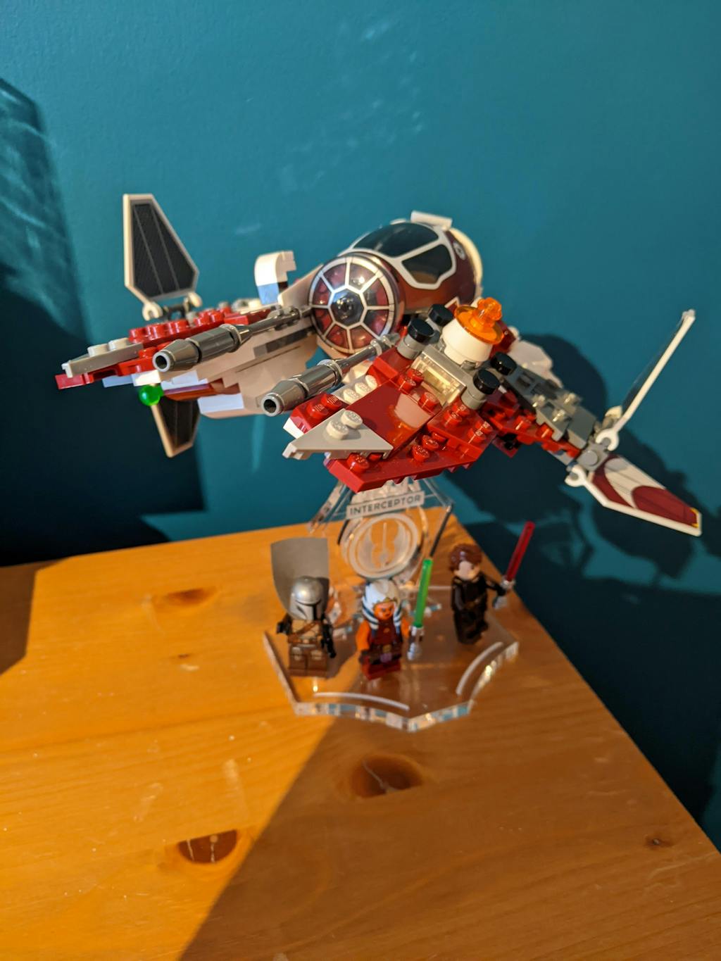 Display stand angled for Lego 75401 Ahsoka's Jedi Interceptor + minifigures slots (A1111)
