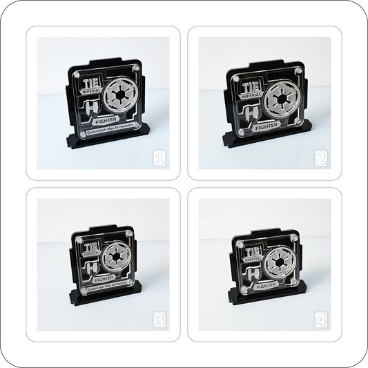 Display Plaque for TIE FIGHTER Models (black-clear, custom text, stand or wall display) -P001