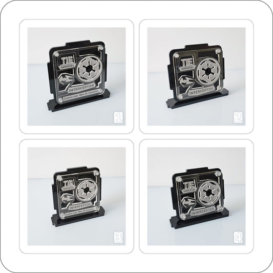 Display Plaque for TIE INTERCEPTOR Models (black-clear, custom text, stand or wall display) -P002