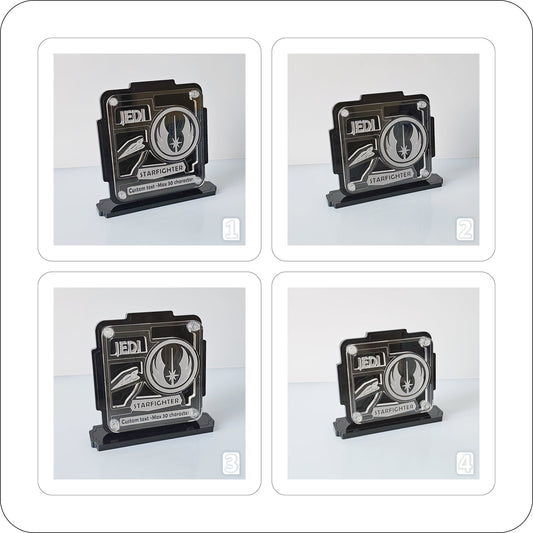 Display Plaque for JEDI STARFIGHTER Models (black-clear, custom text, stand or wall display) -P004
